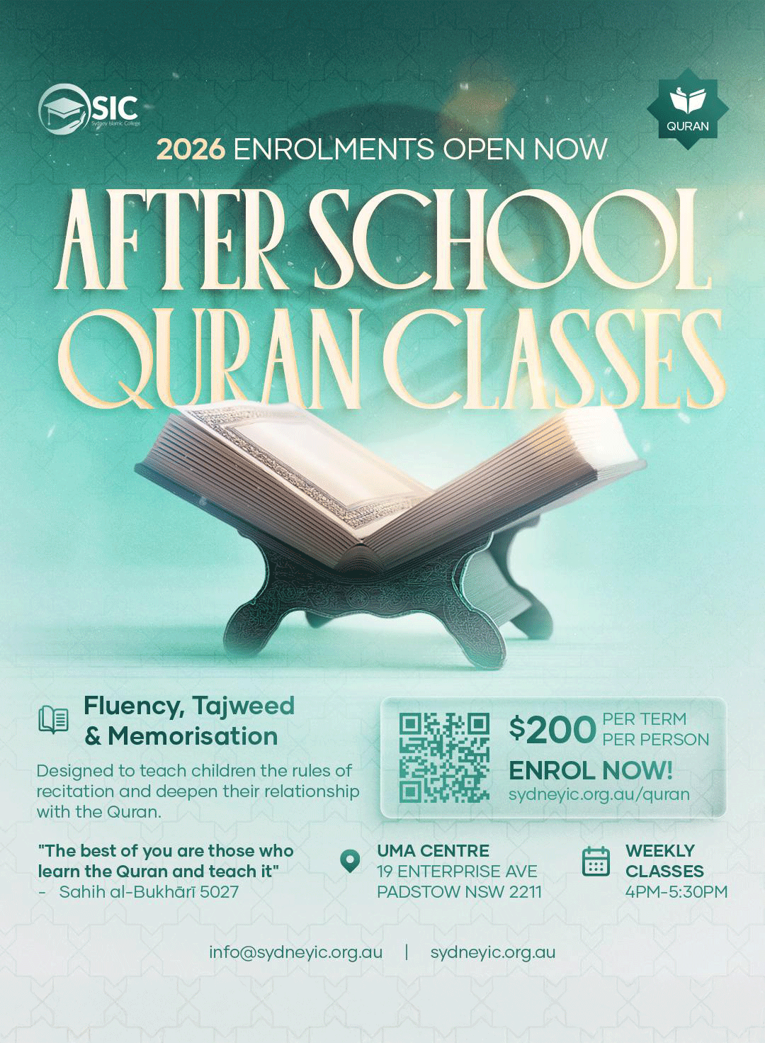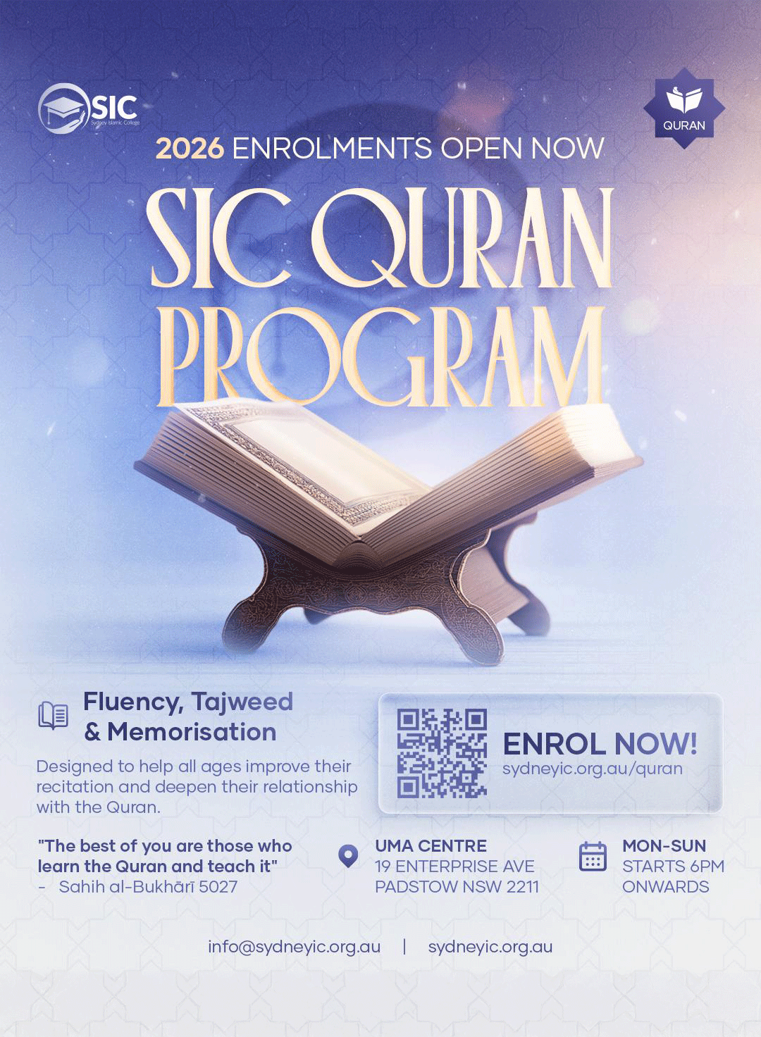 Learn to recite the Quran the way it is meant to be recited. Classes are available from beginners to advanced tajweed, as well as memorisation